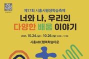 (플러스인뉴스) 시흥시는 시민이 함께 만들고, 시민이 주인공인 ‘제17회 시흥시평생학습축제’를 오는 10월 24일부터 26일까지 3일간 시흥ABC행복학습타운에서 개최한다. 지난 2006년에 처음 시작된 시흥시평생학습축제는 배움을 통해 성장한 시민들이 학습의 즐거움과 성과를 함께 나누고 축하하는 한마당으로, 올해 17번째를 맞이한다. 이번 축제는 ‘너와 나, 우리의 다양한 배움 이야기’라는 주제로 초청 강연, 체험, 전시, 공연, 포럼 등 시민 누구나 참여할 수 있는 다채로운 프로그램이 마련됐다. 10월 24일 오전 10시에는 TV예능 프로그램인 ‘유 퀴즈 온 더 블럭’에 출연해 학교다운 학교의 새로운 모델을 제시한 이명학 교수(前 중동고 교장)의 초청 강연이 시흥ABC행복학습타운 ABC홀에서 열린다. 이어 오후 2시에는 ‘느린 걸음, 다양한 길’을 주제로 생애 전반의 슬로우 러너를 이해하는 학술포럼이 지혜관 2층에서 진행된다. 10월 25일과 26일에는 28개의 체험 프로그램과 20개 팀의 공연, 전시와 먹거리 부스가 운영되며, 26일 오전 10시 30분에는 의사에서 웹툰 작가, 유튜버로 활동 중인