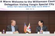 (플러스인뉴스) 이상일 용인특례시장이 13일 용인의 자매도시인 미국 텍사스주 윌리엄슨카운티의 대표단과 만나 양 도시의 발전을 위한 협력 방안을 논의했다. 이날 시청 접견실에서 이 시장은 스티븐 스넬(Steven Snell) 윌리엄슨카운티장과 러스 볼즈(Russ Boles) 윌리엄슨카운티 커미셔너, 데이브 포터(Dave Porter) 윌리엄슨카운티 경제개발파트너십 전무이사를 만나 경제와 산업, 교육 등 다양한 분야에 대해 의견을 나눴다. 이날 이상일 시장을 만난 스티븐 스넬 윌리엄슨카운티장은 전임자인 빌 그래벨(Bill Gravell) 윌리엄슨카운티장에 이어 지난 4월 신임 윌리엄슨카운티장으로 취임했다. 이상일 시장은 “양 도시는 도시 이름을 붙인 명예도로명을 부여하면서 우정을 쌓고, 교류협력을 활발하게 하고 있다”며 “윌리엄슨카운티 대표단과 텍사스 주립대학교 관계자들이 용인에 있는 단국대학교 관계자를 만나 협력관계 구축에 대한 논의를 진행하는 것으로 알고 있는 데 양 도시에 있는 대학이 교류하는 것은 매우 뜻 깊은 일”이라고 말했다. 이 시장은 “윌리엄슨카운티에는 첨단산업 관련 기업들의 입주가 이어