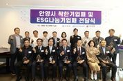 (플러스인뉴스) 안양시는 16일 오전 11시 30분 관내 음식점에서 지역사회와 이웃을 위해 나눔을 실천한 14개 기업을 대상으로 간담회와 함께 ‘착한기업’ 및 ‘이에스지(ESG)나눔기업’ 감사패 전달식을 가졌다. 나눔 실천에 감사의 마음을 전하고 나눔문화를 활성화하기 위한 이번 행사에는 최대호 안양시장과 14개 기업 대표 및 임원진, 구재관 지역사회보장협의체 민간위원장, 김효진 경기사회복지공동모금회 사무처장 등 20여명이 참석했다. 안양시 착한기업은 2년 이상 지속적으로 연평균 1천만원 이상을 기부한 기업으로, 이날 ▲(주)텔레트론 ▲이알케이솔루션(주) 등 2곳이 착한기업 감사패를 받았다. 이에스지(ESG)나눔기업은 지난해 1천만원 이상을 안양시에 기부한 기업으로, 착한기업으로 선정된 2개 기업과 ▲사회복지법인 백우현진복지재단 ▲(주)코스콤 ▲HL홀딩스 주식회사 ▲㈜쿠스코 ▲㈜대현환경 ▲㈜스크린에이치디코리아 ▲㈜벨루션네트웍스 ▲지에스파워(주) ▲디엔에프솔류션 ▲라온디앤씨(주) ▲평촌교통 ▲인창전자(주) 등 14개 기업이 이에스지(ESG)나눔기업 감사패를 받았다. 최대호 안양시장은 “기부는 단순한 나