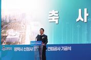 (플러스인뉴스) 평택시의회는 16일, 고덕동 2522번지 일원에서 평택시 신청사 및 시의회 건립 기공식에 참석해, 지방의회의 새로운 패러다임을 제시할 청사의 첫 출발을 함께했다. 이날 행사는 강정구 평택시의회 의장을 비롯해 평택시의회 의원 18명 전원이 참석했으며, 평택시 녹색건축사업과장, 건설사 관계자, 지역 유관기관과 사회단체 관계자, 지역시민 등 약 300명이 함께했다. 기공식은 사업 경과보고, 기념사, 축사, 시삽식 순으로 진행됐다. 강정구 의장은“오늘 첫 삽을 뜨는 평택시 신청사와 시의회 청사는 다가올 평택의 100년을 준비하는 미래 행정의 중심이자 시민 소통의 상징 공간이 될 것이다”라고 하며 “여러분 한 분 한 분의 기대와 응원이 모여, 행정의 효율, 시민 편의, 문화와 소통, 그리고 민주주의가 함께 숨 쉬는 진정한 시민의 집으로 완성되리라 믿는다”라고 전했다. 한편, 평택시 신청사 및 시의회 건립은 고덕국제화계획지구 일대에 위치하며 총 사업비 3,462억원을 들여 부지면적 8만 6,609㎡(약26,199평), 연면적 4만 9,869㎡ (약15,085평) 규모로, 지하 1층에서 지상 5