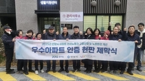 (플러스인뉴스) 안양시노동인권센터는 지난 20일 ‘2025년 고용안정 및 노동환경 개선 우수아파트’로 선정된 래미안안양메가트리아와 힐스테이트인덕원역베르텍스 아파트에서 ‘우수아파트 인증 현판식’을 진행했다고 23일 밝혔다. 안양시는 아파트 관리노동자의 고용안정과 안전한 노동환경을 조성하고, 입주민과 노동자가 서로를 존중 및 배려하는 건강한 아파트공동체 문화를 확산하기 위해 상생협약 체결을 지원하고 모범이 되는 우수아파트를 매년 선정하고 있다. 센터는 아파트단지 현장 실사, 고용노동부 안양지청을 통한 노동법 위반 이력 조회, 안양시 노사민정협의회의 심의 등 엄격한 절차와 심사를 통해 래미안안양메가트리아, 평촌래미안푸르지오, 힐스테이트인덕원역베르텍스, 한마음임광2차아파트, 호계한마음아파트 등 5개 아파트단지를 2025년 우수아파트로 선정했다. 우수아파트 심사는 아파트 관리노동자의 고용안정과 노동환경 개선, 아파트단지의 상생 활동 등 10개 항목을 종합적으로 평가했다. 2025년 우수아파트 인증 현판식에 참석한 입주자대표회의 회장, 관리사무소장, 아파트 관리노동자들은 우수아파트 선정을 계기로 아파트 구성원들이 상생하는