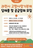 (플러스인뉴스) 과천시는 고향사랑기부제 활성화를 위해 답례품 공급업체를 공개 모집한다고 밝혔다. 시는 최근 열린 답례품선정위원회를 통해 답례품 분야를 확대하고 품목 제한을 없애기로 했다. 이에 따라 관내 사업장을 둔 업체를 대상으로 공개 모집을 진행한다. 신청 대상은 답례품으로 제공할 수 있는 물품을 생산·제조하고 배송이 가능한 업체다. 참여를 희망하는 업체는 과천시 누리집 ‘과천소식'고시‧공고’에서 신청 서식을 작성한 뒤, 5월 13일부터 15일까지 전자우편 또는 과천시청 방문을 통해 서류를 제출하면 된다. 시는 접수된 업체를 대상으로 답례품선정위원회 심의를 거쳐 공급업체와 답례품을 최종 선정할 계획이다. 선정된 답례품은 오는 6월부터 ‘고향사랑e음’을 통해 기부자들에게 제공될 예정이다. 이번 모집은 기부자에게는 선택의 폭을 한층 넓히고, 참여 업체에는 전국 단위 홍보와 판로 확대의 기회를 제공하는 계기가 될 것으로 기대된다. 시 관계자는 “과천시만의 특색을 살린 경쟁력 있는 답례품을 적극 발굴하여 고향사랑기부제의 취지를 살리고, 지역경제 활성화로 이어질 수 있게 하겠다”라고 말했다.