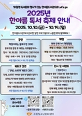 (플러스인뉴스) 수원시청소년청년재단 수원청소년문화센터 한아름도서관은 2025. 독서의 달을 기념하여‘한아름독서축제’를 10월 10일부터 10월 19일까지 운영한다. 이번 독서축제는 △스피치 강사와 함께하는 북토크 강연 △동화구연 공연 △재미 두배 1+1 체험활동 △원화 명화 전시 △도서관 이용자 대출 이벤트 등 청소년과 지역주민이 함께 공감하며 즐길 수 있는 다양한 프로그램으로 구성했다. △스피치 강사와 함께하는 북토크 강연 △동화구연 공연은 사전접수를 통해 참여가 가능하며, 재미 두배 1+1 체험 활동은 별도 접수 없이 현장에서 선착순 참여로 가능하다. 참가비는 전액 무료이다. 사전접수는 10월 1일 수요일부터 선착순으로 모집하며, 신청 방법은 수원시청소년청년재단 홈페이지‘한아름독서축제’안내문의 QR코드로 접속하여 신청할 수 있다. 한아름도서관은 이번‘한아름독서축제’를 통해 청소년과 지역주민의 독서 문화를 장려하고 도서관 활성화를 도모하고자 한다. [뉴스출처 : 경기도 수원시]