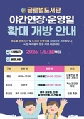 (플러스인뉴스) 의왕시 글로벌도서관(보식골로 30-10)이 시민들의 학습 편의 증진과 도서관 이용 활성화를 위해 2026년 1월 5일부터 도서관 이용 시간 야간 연장 및 공휴일 확대 운영을 실시한다. 이번 운영시간 변경에 따라 평일 도서관의 운영시간은 공간별로 차등 운영된다. 인포룸은 오전 9시부터 오후 6시까지 운영되며, 오후 6시 이후 대출·반납 서비스는 에듀룸에서 이용이 가능하다. 에듀룸은 기존 운영시간에서 확대돼 오전 9시부터 오후 10시까지 연장 운영되며, 야간 시간대에도 대출·반납을 포함한 도서관 서비스의 이용이 가능하다. 또한, 글로벌도서관은 기존 공휴일에 운영되지 않던 에듀룸 학습공간을 오전 9시부터 오후 6시까지 개방해 학생과 시민들의 안정적인 학습 활동을 지원할 계획이다. 휴관일도 일부 조정된다. 기존에는 매주 금요일과 모든 공휴일이 휴관일이었으나, 변경 이후에는 매주 금요일, 신정, 설 연휴, 추석 연휴, 선거일에 한 해 도서관 전체가 휴관한다. 의왕시 글로벌도서관 관계자는 “이번 도서관 운영시간 확대는 시민들의 도서관 이용 수요를 적극 반영해 결정된 것으로, 특히,