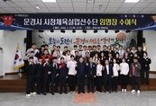 (플러스인뉴스) 문경시청 실업선수단 신규 선수 임명장 수여식을 15일 시청 대회의실에서 개최하며 새로운 도약을 알렸다. 이날 행사에는 문경시청 실업선수단 지도자 및 선수 42명 전원 참석한 가운데 진행됐으며 소프트테니스 3명, 육상 2명, 씨름 4명 총 9명의 신규 선수가 임명장을 수여받고 문경시의 이름으로 새로운 출발선에 섰다. 임명장을 받은 신규 선수들은 문경시청 실업선수단의 일원으로서 자부심과 책임감을 가슴에 새기며, 올해 출전하는 각종 국내·외 대회에서 반드시 우승하겠다는 각오를 한목소리로 다짐했다. 특히 이들은“훈련 하나하나에 혼신을 다해 문경시의 명예를 높이겠다”며 강한 의지를 내비쳤다. 이번 임명은 단순한 선수 충원이 아닌, 문경 체육의 미래를 향한 전략적 선택이라는 점에서 더욱 의미가 깊다. 아울러 이번년에는 9월 일본에서 개최 예정인“제20회 아이치-나고야 아시안게임”출전이라는 중장기 목표를 향해 체계적인 훈련과 국제 경쟁력 강화에 전력을 다할 계획이다. 문경시는 그동안 지속적인 관심과 훈련 지원을 통해 실업선수단의 경쟁력을 높여왔으며, 이번 신규 선수 영입
