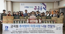 (플러스인뉴스) 수원시 권선구 금곡동 행정복지센터는 지난 29일, 추석 명절을 맞이하여 ‘추석 명절 이웃사랑 나눔 전달식’을 개최했다. 이번 전달식에는 △금곡동 주민자치회 △통장협의회 △지역사회보장협의체 △새마을문고 △방위협의회 △수원자율방범대 칠보지대 △무학사 △용화사 △서호새마을금고 △수원농협 금곡지점 △시립금곡동어린이집 △시립금호어린이집 △백양TNS 등 지역 내 다양한 단체 및 유관기관들이 참여해 따뜻한 명절 분위기를 조성했다. 참석자들은 △백미 △라면 △상품권 △선물세트 등 다채로운 명절 선물을 준비했으며, 이 물품들은 추후 취약계층 주민들에게 전달될 예정이다. 장성임 동장은 “어려운 시기에도 이웃사랑을 실천해 주신 모든 단체와 기관에 깊은 감사를 드리며 이웃과 함께 정과 사랑을 나누는 추석 명절이 되기를 바란다”라고 말했다. [뉴스출처 : 경기도 수원시]