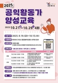 (플러스인뉴스) 구리시 공익 활동 지원센터는 '2025년 공익활동가 양성 교육' 수강생을 모집한다. 신청 기간은 9월 19일부터 10월 15일까지이며, 구리시 통합예약 포털을 통해 신청할 수 있다. 공익활동가 및 관련 분야에 관심 있는 시민이면 누구나 참여할 수 있다. 이번 교육은 10월 21일부터 29일까지 총 4회 과정으로 진행되며, 공익활동가의 소통 역량 강화와 스트레스·갈등 관리 능력 향상을 목표로 기획됐다. 공통과목은 공공캠페이너 젤리장 대표 장종원 강사가 ▲무엇을 어떻게 전달할 것인가-소통 감각의 기반 다지기 ▲메시지 만들기와 전달 전략을 주제로 강의한다. 선택과목은 H·교육컨설팅 대표 박현주 강사가 맡아 ▲스트레스와 힐링 프로그램-스트레스 해법 ▲의사소통 프로그램-조직 갈등 관리 강의를 진행한다. 교육을 수료한 참가자에게는 수료증이 발급되며, 2026년도 공익 활동 지원사업 공모 시 가점 10점의 우대 혜택이 제공된다. [뉴스출처 : 경기도 구리시]
