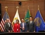 (플러스인뉴스) 평택시가 미국 워싱턴주 타코마시와 시애틀 항만청을 잇따라 방문하며 지역 협력 확대에 나섰다. 정장선 평택시장과 강정구 평택시의회 의장은 23일(현지시간) 타코마 시청을 찾아 빅토리아 우더즈 타코마 시장과 면담을 가졌다. 이 자리에서 양측은 최근 체결된 애니 라이트 스쿨(Annie Wright Schools)과의 국제학교 설립 MOU를 계기로, 교육 협력을 넘어 문화·경제·물류 등 도시 전반에 걸친 협력 기반을 마련하자는 데 의견을 모았다. 정 시장은 “타코마는 한국전쟁 이후 형성된 한국계 커뮤니티의 뿌리가 깊은 도시이고, 평택은 미국의 해외 주둔 기지 중 최대 규모인 캠프 험프리스가 위치한 도시”라며 “양 도시는 역사와 현재 모두에서 한미 동맹의 상징적 의미를 가진다”고 강조했다. 실제로 워싱턴주에는 한국계 인구가 10만명 정도가 거주하고 있으며, 이 가운데 상당수가 타코마·시애틀을 포함한 퓨젯 사운드 지역에 집중되어 있다. 이어 평택시 대표단은 오후에 시애틀 항만청(Northwest Seaport Alliance)을 방문해 항만 관계자들과 물류 협력 방안을 논의했다. 현재 타코마항에는 평택항에