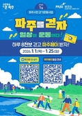 (플러스인뉴스) 파주보건소는 2026년 새해를 맞아 시민들의 건강한 생활습관 형성과 일상 속 걷기 실천을 응원하기 위해 1월 1일부터 25일까지 모바일 걷기 앱 ‘워크온(WalkOn)’을 활용한 ‘걷기 챌린지’를 운영한다고 밝혔다. 이번 프로그램은 하루 8,000보 이상(최대 10,000보 인정) 걷기를 목표로 하며, 누적 20만 보를 달성한 참여자에게는 지역화폐 파주페이(5,000원권) 응모 기회가 주어진다. 파주시는 목표 달성자 중 매월 500명을 추첨해 파주페이를 지급할 예정이며, 참여를 희망하는 시민은 사전에 경기지역화폐 앱을 통해 파주페이에 가입해야 한다. 파주시는 시민들의 신체활동 증진을 위해 매월 ‘워크온 걷기 챌린지’를 운영하고 있으며, 앞으로도 다양한 걷기 행사와 참여형 프로그램을 확대해 생활 속 걷기 실천 문화 조성과 지속 가능한 시민 건강 증진 사업을 추진해 나갈 계획이다. 이한상 파주보건소장은 “걷기는 누구나 쉽게 실천할 수 있는 가장 효과적인 운동”이라며 “새해를 맞아 걷기를 통해 건강도 챙기고, 지역화폐 혜택도 받을 수 있는 이번 프로그램에 시민 여러분의 적극적인 참여를 바란다”라고 말