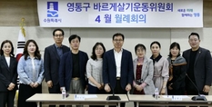(플러스인뉴스) 수원시 영통구는 지난 24일 바르게살기운동 영통구지도위원회가 영통구청 상황실에서 각 동 위원장 및 총무 등 14명이 참석한 가운데 4월 월례회의를 개최했다고 밝혔다. 이날 회의에서는 ▲수원시 평생학습관 2분기 프로그램 수강생 모집 ▲상반기 찾아가는 우산수리센터 운영 ▲경기 기후보험 시행 ▲공영주차장 승용차 5부제 시행 등 주요 시·구정 정책을 공유했다. 또한, 전국동시지방선거를 앞두고 위원회의 선거기간 중 활동 제한사항을 안내하고, 6월 이후 각종 봉사 및 지역사회 활동이 재개됨에 따라 적극적인 참여를 독려했다. 장수석 영통구청장은 “지방선거 기간 동안 위원 여러분의 공정한 자세와 협조를 당부드린다”며, “특히 취약계층의 돌봄 활동과 이웃 안부 살피기에도 적극적으로 힘써주시길 바란다. 선거가 끝난 이후 다시 활발한 지역 봉사활동이 이어질 수 있기를 응원한다”고 말했다. 김명순 회장은 “최근 지역사회의 변화에 대응하기 위해 위원들의 적극적인 참여와 연대가 중요하다”며 “저를 포함한 모든 위원이 한마음으로 소통하며, 주민들의 불편을 해소하고 구정 발전에 기여할 수 있도록 함께 힘쓰겠다”