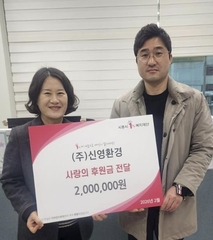 (플러스인뉴스) 시흥시 거모동에 있는 생활폐기물 수집ㆍ처리 전문업체인 ㈜신영환경이 지난 2월 9일 은행동 지역사회보장협의체에 지역 내 어려운 이웃을 위해 후원금 200만 원을 기탁했다. 신영환경은 평소 지속적인 후원과 취약계층 주거환경 개선에 적극적으로 참여하며 지역사회 나눔 문화 확산에 이바지하고 있다. 후원금은 경제적 어려움을 겪고 있는 이웃을 위한 복지 사업에 사용될 예정으로, 지역사회에 작은 희망과 위로를 전하고자 하는 신영환경의 뜻이 담겼다. 김창주 신영환경 대표이사는 “지역사회와 함께 성장하는 기업으로서, 작은 정성이지만 이웃에게 힘이 될 수 있는 나눔을 꾸준히 이어가겠다”라고 말했다. 장성모 은행동 지역사회보장협의체 민간위원장은 “어려운 상황 속에서도 나눔과 봉사에 힘써주시는 신영환경에 감사드린다”라고 말했다. 유성희 은행동장은 “지역사회를 위한 따뜻한 마음을 나눠주신 신영환경에 깊이 감사드린다. 후원금은 이웃들에게 희망과 용기를 전하는 뜻깊은 선물인 만큼, 도움이 필요한 곳에 소중하게 전달하겠다”라고 말했다. [뉴스출처 : 경기도 시흥시]