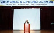 (플러스인뉴스) 파주시는 지난 29일 전 직원을 대상으로 녩년 장애 인식 및 직장 내 장애인 인식개선 교육’을 실시했다. 총 3차에 걸쳐 진행된 이번 교육은 장애에 대한 올바른 이해를 높이고 차별 없는 직장 문화를 조성하기 위해 마련됐다. 명경희 강사, 오규재 강사, 양서연 동반 강사가 차례로 참여해 ‘인권 존중과 포용적 사회’를 주제로 강의를 진행했으며, 장애 이해, 의사소통, 편의 제공, 고용 사례 등을 중심으로 직장 내 인식 개선의 필요성을 강조했다. 특히 발달장애인 당사자인 양서연 강사는 플루트 연주를 선보이며 음악으로 공감과 이해의 메시지를 전하며 큰 호응을 얻었다. 김경일 파주시장은 “이번 교육을 통해 장애인에게 중요한 것은 배려보다는 권리를 존중하는 마음이라는 점을 명확히 하고, 생활 속에서 이를 실천해 주시기를 바란다”라고 말했다. [뉴스출처 : 경기도 파주시]