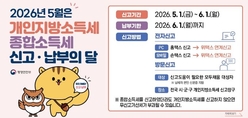 (플러스인뉴스) 파주시는 납세자 편의를 위해 오는 5월 6일부터 6월 1일까지 파주시청 신관 1층 지방세민원실에 ‘종합소득세·개인지방소득세 신고 도움 창구’를 운영한다. 종합소득세는 2025년에 발생한 사업소득, 근로소득, 이자·배당소득, 연금소득, 기타소득 등을 합산해 신고하는 세금이다. 개인지방소득세는 종합소득세의 10%에 해당하는 지방세로, 종합소득세 신고와 함께 5월 1일부터 6월 1일까지 신고·납부해야 한다. 도움 창구는 모두채움 안내문을 받은 납세자 중 전자신고가 어려운 납세자를 대상으로 신고 절차를 지원한다. 방문 시 종합소득세 신고 후 개인지방소득세까지 연계해 한 번에 안내받을 수 있다. ‘모두채움’안내문은 소규모 사업자, 복수근로 소득자, 주택임대소득 등 분리과세 대상자, 종교인 등에게 5월 중 국세청에서 일괄 발송할 예정이다. 안내문에 기재된 세액을 확인 후 간편하게 신고할 수 있고, 소득이나 세액에 변동사항이 있을 경우 수정 신고도 가능하다. 26년 1월 부가가치세 납부기한 직권 연장 대상 사업자, 석유 화학물질 관련 제조업, 운송업 등 유가에 민감한 업종 영위 사업자, 티몬·위