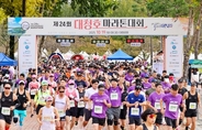 (플러스인뉴스) 대전 대덕구는 19일 금강로하스 대청공원 일원에서 열린 ‘제24회 대청호마라톤대회’가 5000여 명이 참여한 가운데 성황리에 막을 내렸다고 밝혔다. 하프(21.0975km)·미니(10km)·건강(5km) 등 3개 부문으로 치러진 이번 대회에는 하프 1047명, 미니 1631명, 건강코스 1208명 등 총 3886명이 출전했으며, 운영 요원과 자원봉사자, 응원 시민들이 함께 어우러져 지역 대표 건강 축제의 면모를 보여줬다. 눈길을 끈 장면도 적지 않았다. 대덕구 홍보대사인 조웅래 ㈜선양소주 회장이 하프 코스에 직접 나서 완주하며 현장의 열기를 끌어올렸다. 지난 9월 홍보대사로 위촉된 조 회장은 이번 완주로 역할을 몸소 보여줬다는 평가다. 또한, 대덕구 드림스타트 아동과 가족들도 건강 코스에 나란히 참여했다. 대덕구 드림스타트 가족들은 ‘건강 증진’과 ‘가족 유대 강화’라는 대회 취지에 동참해 가을빛 대청호를 배경으로 ‘함께 달리는 가족의 날’을 만들었다. 안전·편의 중심의 운영도 호평을 받았다. 대회 조직위는 전 구간에 구급차를 배치하고 급수대를 촘촘히 운영해 탈수와 부상 예방에 만전
