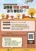 (플러스인뉴스) 구리시는 가을철 주민들의 건강한 생활 습관 형성과 스트레스 완화를 위해 ‘갈매동 맨발 산책로 걷기 챌린지’를 오는 10월 15일부터 31일까지 17일간 운영한다고 밝혔다. 이번 챌린지는 청명한 가을 날씨 속에서 자연을 느끼며 맨발 걷기 운동을 통해 신체활동을 늘리고, 정신적 힐링의 시간을 갖도록 마련된 프로그램이다. 참여 방법은 모바일 앱 ‘워크온(WalkOn)’을 통해 ‘갈매동 커뮤니티’에 가입 후 챌린지 참여를 신청하면 된다. 참가자는 기간 내 두 가지 과제를 수행해야 하며, ① 총 10만 보 걷기(하루 최대 1만 보 인정),② 맨발 산책로 걷기 사진을 게시판에 공유하는 과제를 완료하면 된다. 챌린지를 완주한 참가자 중 추첨을 통해 총 100명에게 모바일 음료 쿠폰이 제공될 예정이며, 당첨자는 11월 10일 ‘워크온’ 앱 내 보관함에서 확인할 수 있다. 쿠폰은 개별 문자로 발송된다. 백경현 구리시장은 “이번 챌린지를 통해 갈매동 주민들이 맨발 산책로를 걸으며 자연 속에서 여유와 건강을 함께 느껴보는 시간이 되길 바란다”라며, “앞으로도 시민이 즐겁게 참여할 수 있는 생활밀착형 건