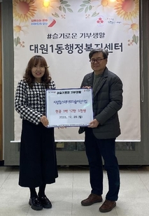 (플러스인뉴스) 오산시 대원1동 행정복지센터는 지난 29일 시립힐스테이트다올어린이집이 프리마켓 운영을 통해 마련한 성금 112만5천 원을 기탁했다고 밝혔다. 이번 기탁은 연말을 맞아 어린이집 원아와 학부모가 함께 참여한 프리마켓을 통해 조성된 것으로, 아이들이 직접 사용하던 장난감과 책 등을 나누며 나눔의 가치를 체험한 결과라는 점에서 의미를 더했다. 작은 물건들이 모여 마련된 성금에는 아이들과 학부모의 따뜻한 마음이 고스란히 담겼다. 홍진희 시립힐스테이트다올어린이집 원장은 “아이들이 어릴 때부터 나눔의 소중함을 배우고, 그 마음이 지역사회로 이어지길 바란다”며 “앞으로도 아이들과 함께하는 다양한 나눔 활동을 통해 지역사회와 함께 성장하는 공동체 문화를 만들어가겠다”고 말했다. 황완순 대원1동장은 “아이들과 학부모, 교직원이 함께 실천한 따뜻한 나눔에 깊이 감사드린다”며 “기탁해주신 성금은 관내 어려운 이웃들에게 소중히 전달해 큰 힘이 되도록 하겠다”고 밝혔다. 한편, 이번 기탁은 아이들이 직접 참여해 이웃을 돕는 나눔을 실천했다는 점에서 연말연시 지역사회에 훈훈한 감동을 전하는 모범 사례로 평가받