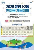(플러스인뉴스) 운정1·2동 체육회는 오는 25일 운정체육공원(가람로 150번길 41-33)에서 ‘2025 운정1·2동 한마음 체육대회’를 개최한다고 밝혔다. 이번 2025 운정1·2동 한마음 체육대회는 작년에 이어 두 동이 함께 개최하면서 운정 1·2동 주민들의 건강증진과 화합을 이루는 데 중점을 뒀다. 행사는 오전 10시 40분 개회식을 시작으로, ▲어린이 장애물 달리기 ▲신발 양궁 등 온 가족이 즐길 수 있는 다양한 체육 프로그램이 진행될 예정이다. 또한 ▲고고장구 ▲태권도 시범단 ▲거리 공연 ▲파주시 홍보대사 김설·김성대의 축하공연이 더해져 풍성한 볼거리를 제공한다. 지역사회에서 후원한 다양한 경품도 준비되어 있으며, 참가자들의 편의를 위해 주요 아파트 단지 앞에서 승차할 수 있는 순환 버스를 운영할 계획이다. 이대영 운정2동 체육회장은 “같은 생활권을 가진 운정1동과 운정2동 주민들이 한자리에 모여 여유를 즐기고 화합할 수 있는 장이 될 수 있도록 열심히 준비했다”라며 “행사가 성공적으로 운영될 수 있도록 주민들의 많은 참여를 부탁드린다”라고 전했다. [뉴스출처 : 경기도 파주시]