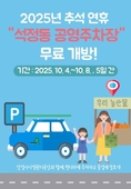 (플러스인뉴스) 안성시시설관리공단은 2025년 추석 연휴를 맞아 시민들과 귀성객들의 편의를 제공하고 전통시장 이용 활성화를 위해, 공단에서 수탁 운영 중인 9개소 공영주차장 중 석정동 공영주차장 1개소를 무료 개방한다고 밝혔다. 무료 개방 기간은 10월 4일부터 10월 8일까지 5일 간이며 석정동 공영주차장은 안성시 전통시장 주변 상권과 인접해 있고 주차수요가 집중되는 시설로, 무료 개방을 통해 명절 장보기와 지역 상권 활성화에 큰 도움이 될 것으로 기대된다. 공단 관계자는 “이번 무료개방은 한정된 주차공간을 효율적으로 운영하여 전통시장을 찾는 시민들의 주차편의 제공 및 지역경제 활성화에 기여하고자 추진됐다.”며 “무료 개방기간 동안 주차 혼잡을 최소화 할 수 있도록 현장 안전 관리에 최선을 다할 예정”이라고 전했다. 이정찬 이사장은 “민족 최대 명절인 추석을 맞아 인근 시장을 이용하는 시민 여러분께 조금이나마 편리한 주차환경을 제공할 수 있게 되어 뜻깊게 생각한다.”며 “앞으로도 공영주차장이 시민 생활에 체감적으로 도움이 되고 지역경제 활성화에 기여할 수 있도록 최선을 다할 예정이다. 올 한해 가족과 함께 풍