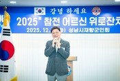 (플러스인뉴스) 성남시의회는 2일 중원구 산성대로 소재 루미에르 애비뉴에서 열린 재향군인회‘2025년 참전어르신 위로잔치’에 참석했다. 이번 행사는 국가를 위해 헌신한 참전유공자들의 공헌을 예우하고 감사의 마음을 전하기 위해 마련됐다. 이날 행사에서는 참전어르신들을 위한 식사 대접과 함께 위로 공연, 소통의 시간이 이어지며 훈훈한 분위기가 펼쳐졌다. 참석자들은 참전유공자들의 노고에 깊은 감사의 뜻을 전하며 건강과 안녕을 기원했다. 안광림 부의장은“대한민국의 자유와 평화는 참전용사분들의 헌신 속에서 지켜졌다”며“성남시의회도 어르신들의 명예와 복지가 더욱 두터워질 수 있도록 지속적으로 관심을 기울이겠다”고 말했다. [뉴스출처 : 경기도 성남시의회]