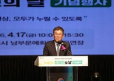 (플러스인뉴스) 평택시의회는 4월 17일, 남부문화예술회관 대공연장(평택시 비전동)에서 열린‘제46회 장애인의 날’ 기념행사에 참석해 포용적인 지역사회 조성에 힘을 보탰다. 이날 기념행사에는 이윤하 의장을 비롯한 시의원들이 참석했으며, 경기도지체장애인협회 평택시지회장을 포함한 9개 장애인단체 연합 관계자 등 약 1,000여 명이 함께했다. 기념행사는 장애인 인권 헌장 낭독, 감사패 시상, 기념사, 격려사 순으로 진행됐으며, 이어진 2부에서는 경기도 문화예술단 등의 축하공연이 펼쳐져 화합의 시간을 가졌다. 또한 시화, 캘리그라피, 원예 전시 프로그램과 장애유형별 특성을 고려해 수어·문자 통역, 현장 해설, 휠체어 보장구 수리 부스도 마련됐다. 이윤하 의장은 “장애인의 날은 우리 사회가 함께 살아가는 공동체로 나아가기 위한 의미를 되새기는 소중한 날”이라며 “누구나 존중받으며 당당한 사회의 구성원으로 살아갈 수 있는 환경을 만드는 것이 중요하다”라고 말했다. 이어 “오늘은 서로를 격려하고 희망을 나누는 뜻깊은 시간이 되길 바라며 평택시의회도 장애인의 권익 향상을 위해 지속적으로 노력하겠다”고 밝혔다.