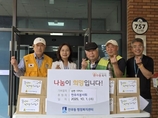 (플러스인뉴스) 수원시 권선구 곡선동 행정복지센터는 지난 9월 30일, ‘JK제빵소’와 ‘찐수제컵밥’이 함께 따뜻한 나눔을 실천했다고 밝혔다. 이날 ‘JK제빵소’는 정성스럽게 구운 빵을, ‘찐수제컵밥’은 간편하게 조리할 수 있는 밀키트를 후원하여 관내 취약계층 가정에 전달했다. 이번 후원은 경제적 어려움으로 식사 해결에 어려움을 겪는 이웃들에게 든든한 힘이 될 것으로 기대된다. 특히, ‘JK제빵소’와 ‘찐수제컵밥’은 평소에도 곡선동 지역사회보장협의체 위원으로 활동하며 취약계층 지원과 지역 나눔 문화 확산에 앞장서고 있어 더욱 의미가 깊다. 김미현 동장은 “지역 내 업체들이 따뜻한 마음을 모아주셔서 감사드린다”라며 “앞으로도 민·관이 함께 힘을 모아 나눔 문화를 확산해 나가겠다”라고 전했다. [뉴스출처 : 경기도 수원시]