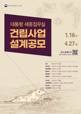 (플러스인뉴스) 행정중심복합도시건설청은 행정수도 완성을 위한 핵심 시설인 ‘대통령 세종집무실’의 건축 설계공모를 1월 12일 사전규격공고를 시작으로 본격 추진한다고 밝혔다. 행복청은 대통령 세종집무실을 국격을 높이고 국민적 자긍심을 고취하는 역사적 건축물로 만들기 위해 품격 있는 디자인, 대통령과 참모들 간의 소통 강화 등 국정 효율성 제고, 최고 수준의 보안과 국민 소통과의 조화 등을 설계 주안점으로 제시했다. 이번 설계공모를 통해 대통령 집무실, 관저, 위기관리센터 및 업무시설·국민소통시설을 포함하는 연면적 4만㎡ 규모의 대통령 세종집무실에 대한 건축설계안을 제안받게 되며, 추가로 향후 대통령 집무실 전체 이전 등에 따른 확장 가능성을 고려한 단계적 건축방안까지 제안받을 계획이다. 설계공모 공고에 따라 앞으로 2026년 1월 현장 설명회, 2026년 4월 작품접수 및 심사 등을 거쳐 2026년 4월 말 최종 당선작을 선정할 계획으로, 당선자에게는 대통령 세종집무실 기본 및 실시설계권(12개월, 111억원)이 주어진다. 작품심사는 1, 2차에 나눠 진행하며, 공모는 국민의 목소리가 설계안 선정에