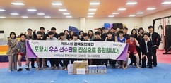 (플러스인뉴스) 포항시가 제64회 경북도민체육대회를 앞두고 종목별 선수단을 격려하며 서포터즈 응원 활동을 이어가고 있다. 실국과 읍면동, 체육회, 지역 기업이 손잡고 서포터즈단을 구성해 경기 준비에 여념이 없는 선수들에게 힘을 보태며 선수들의 사기 진작과 경기력 향상을 지원하고 있다. 지난 24일에는 포항시 부시장 직속기관인 정책기획관, 대변인과 감사담당관이 우슈 선수단 훈련장을 방문해 이온음료와 과일 등 간식을 전달하며 선수들의 컨디션 관리에 힘을 보탰다. 경기 일정에 맞춰 현장 응원도 이어갈 계획이다. 같은 날 환경국을 중심으로 한 서포터즈단은 건강랜드를 찾아 골프 선수단을 격려했다. 연일읍과 연일읍체육회, 에코프로 등 20여 명이 참여해 민·관 협업형 응원 체계를 구축하며 선수단의 사기를 북돋웠다. 또한 도시안전주택국 안전총괄과와 지진방재사업과는 청마복싱체육관을 방문해 복싱 선수단과 결연 서포터즈를 맺고 응원을 이어갔다. 선수들은 격려 속에서 훈련에 집중하며 대회 선전을 향한 의지를 다졌다. 앞서 지난 21일에는 농구 서포터즈단이 농구 선수단을 찾아 격려를 진행했다. 현장에는