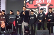(플러스인뉴스) 이재준 수원특례시장이 29일 ‘2025 kt 위즈 팬페스티벌’에서 “팬 한분 한분의 열렬한 응원을 발판 삼아 내년 시즌에도 ‘마법 같은 경기’ 펼치길 응원한다”며 “앞으로도 변함없는 응원과 우렁찬 함성으로 kt위즈와 함께 해주시길 바란다”고 말했다. 수원컨벤션센터 전시홀에서 열린 이날 행사에는 kt 위즈 야구팬(시즌권 회원 등), kt 위즈 1·2군 선수 등 5000여 명이 참석했다. 행사는 팬 사인회, 야구 꿈나무 대상 체험 레슨, 팬과 선수가 함께하는 듀엣 가요제 등으로 진행됐다. [뉴스출처 : 경기도수원시]