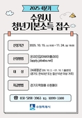 (플러스인뉴스) 수원특례시는 10월 15일 오전 9시부터 11월 24일 오후 6시까지 24세 청년을 대상으로 ‘2025년 4분기 청년기본소득’ 신청을 받는다. 청년기본소득은 청년층의 사회 참여를 촉진하고 사회적 기본권을 보장하기 위한 제도다. 만 24세 청년에게 분기별 25만 원씩, 연간 최대 100만 원을 지역화폐로 지급한다. 4분기 지급일은 12월 20일이다. 대상은 신청일 기준으로 경기도에 주민등록을 둔 24세(2000년 10월 2일~2001년 10월 1일 출생) 청년이다. 3년 이상 연속 또는 합산 10년 이상 경기도에 거주한 경우 신청할 수 있다. 수원시 거주 청년은 경기지역화폐 ‘수원페이’로 청년기본소득을 받는다. 수원페이 카드가 없는 대상자에게는 신청할 때 입력한 주소로 카드를 발송한다. 수원페이 카드 수령 후 코나아이 고객센터 또는 경기지역화폐 모바일 앱에서 등록하면 사용할 수 있다. 수원페이는 수원시 내 전통시장과 소상공인 업체 등에서 사용할 수 있다. 학원 수강료나 시험 응시료 결제 등으로 청년기본소득 사용처를 점차 확대할 예정이다. 경기도일자리플랫폼 잡아바에 접속해