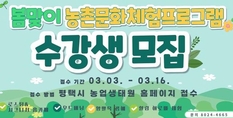 (플러스인뉴스) 평택시는 오는 4월부터 농업기술센터에서 도시민의 정서적 안정과 농촌 문화 가치 확산을 위한 '2026년 봄맞이 농촌문화체험 프로그램’을 운영한다. 이번 프로그램은 자연 재료를 활용해 도시민들이 일상 속 스트레스를 해소하고 농업·농촌을 친숙하게 느낄 수 있도록 기획됐으며, 3일부터 16일까지 교육생을 모집한다. 교육 과정은 실습 중심의 4개 강좌로 구성되어 시민들에게 다채로운 즐거움을 선사할 예정이다. 주요 내용은 △평택 특산물을 활용한 로스팅 및 홈카페 메뉴 만들기 △버려지는 자원을 재활용하는 리사이클링 양말목 공예 △천연 아로마 에센스로 화장품을 직접 만드는 힐링 아로마 클래스 △나무에 온기를 담아내는 현대 우드버닝 등 자연 친화적인 취미 활동으로 꾸며진다. 특히 이번 교육은 어렵게 느껴졌던 ‘탄소중립’이나 ‘지역 상생’이라는 가치를 평택 특산물로 맛있는 메뉴를 만들고 예쁜 소품을 빚어보는 활동에 녹여내, 시민들이 일상에서 즐겁고 친근하게 경험할 수 있도록 구성했다. 평택시 농업기술센터 관계자는 “이번 봄맞이 프로그램이 시민들에게는 배움의 즐거움과 휴식을, 농촌에는 활력을 불어넣는