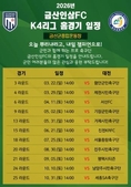 (플러스인뉴스) 금산인삼에프씨는(FC)는 2026 시즌 케이(K)4리그 안방 사수를 위한 홈경기 일정을 전격 안내에 나섰다. 이번 안내는 군민들이 미리 경기 관람 계획을 세우고 가족·지인과 함께 경기장을 찾을 수 있도록 돕기 위해 마련됐다. 주요 일정 및 상대팀은 △3월 29일 제천시민축구단 △4월 11일 서산에프씨(FC) △5월 2일 기장군민축구단 △5월 31일 거제시민축구단 △6월 21일 진천케이알에프씨(KRFC) △7월 25일 서울중랑축구단 △8월 30일 진주시민축구단 △9월 5일 평택시티즌 △10월 10일 남양주시민축구단 △10월 31일 세종에스에이(SA)축구단 등이다. 홈경기는 군민들의 관람 편의를 위해 주말 오후 시간대에 집중적으로 배치됐다. 구단은 매번 홈경기마다 다채로운 이벤트와 공연, 지역 특산물 홍보 부스 등을 운영해 금산종합운동장을 단순한 경기장을 넘어선 군민 화합과 소통의 광장으로 만들 예정이다. 구단 관계자는 “선수들에게 가장 큰 힘은 관중석을 가득 메운 군민 여러분의 뜨거운 함성”이라며 “확정된 홈경기 일정을 꼭 확인하셔서 경기장을 찾아주시고 우리 금산의 자부심