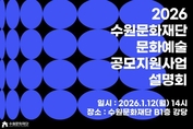 (플러스인뉴스) 수원문화재단은 오는 9일부터 지역 문화예술인 및 단체를 위한 2026년도 수원 문화예술지원사업 공모를 시작한다. 이번 공모지원사업은 지역 문화예술인의 자율적이고 다양한 문화예술 창작‧활동을 지원하기 위해 마련됐다. ▲문화예술 창작지원사업 ▲유망예술가 지원사업 ▲경기예술활동 지원사업 ▲형형색색 문화예술지원사업 등 총 4개 사업을 진행한다. 이번 공모도 전년도와 동일하게 ▲지원분야 간소화 및 일원화 ▲청년예술인 우대(유망예술가 지원사업) ▲원로예술인 및 장애예술인 대상 우선할당제(형형색색 문화예술지원사업)가 적용된다. 먼저 ‘문화예술 창작지원사업’은 지역 전문예술인 및 단체의 창작활동 활성화를 위한 사업이다. 지원 분야는 2025년부터 기존 4개 분야에서 공연/시각/문학 3개 분야로 변경됐으며, 미발표 신작에 한하여 신청이 가능하다. 사업비는 총 8,000만원으로 건당 지원금은 분야별로 상이하다. ‘유망예술가 지원사업’은 활동경력 5년 이내의 지역 신진예술가 및 단체의 창작활동 활성화를 위한 사업이다. 공연/시각 총 2개 분야의 창작 및 실연을 지원한다. 올해도 청년예술인(1986~20