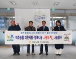 (플러스인뉴스) 여주농협은 지난 30일 관내 어려운 이웃들을 돕기 위한 ‘사랑의 쌀’기탁식을 가졌다. 이날 농협은 추운 겨울철 경제적 어려움을 겪고 있는 소외계층에게 전달해 달라며 백미 10kg 총30포를 강천면 행정복지센터에 전달했다. 이번 기탁은 연말연시를 맞아 지역사회의 나눔 문화를 확산하고, 농협의 사회적 책임을 다하기 위해 마련됐다. 전달된 백미는 관내 저소득 홀몸어르신, 복지사각지대 가구 등 도움이 필요한 이웃들에게 소중히 전달될 예정이다. 이병길 여주농협 조합장은 “작은 정성이지만 우리 주변의 어려운 이웃들이 따뜻한 겨울을 보내는 데 도움이 되길 바라는 마음으로 준비했다”며, 앞으로도 여주농협은 지역사회와 함께 성장하며, 지속적인 나눔활동을 통해 이웃사랑을 실천해 나가겠다“고 전했다. 배인수 강천면장은 ”여주농협 과 이병길 조합장님께 깊은 감사를 드리며, 기탁해 주신 물품은 지원이 필요한 분들에게 정성를 담아 잘 전달하겠다“고 화답했다. [뉴스출처 : 경기도 여주시]