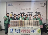 (플러스인뉴스) 수원시 권선구 곡선동 새마을부녀회는 11일 지역 내 이웃을 위한 ‘사랑의 반찬 나눔 행사’를 진행했다. 이번 행사는 겨울철 한파 속에서 돌봄이 필요한 이웃의 식생활 부담을 덜고, 지역사회 나눔 문화를 확산하기 위해 마련됐다. 이날 부녀회원들은 이른 시간부터 식재료 손질과 조리에 힘을 모아 정성껏 준비한 반찬을 개별 포장했으며, 완성된 반찬은 곡선동 내 취약계층에게 직접 전달됐다. 특히 전달 과정에서는 단순한 물품 지원을 넘어 대상 가구의 안부를 확인하고 생활 불편 사항을 살피는 등 따뜻한 돌봄을 함께 실천했다. 김미현 곡선동장은 “작은 반찬 한 팩이지만 이웃에게는 큰 위로가 될 수 있다”며 “앞으로도 지역의 민·관이 힘을 모아 도움이 필요한 분들을 세심하게 살피고, 지속 가능한 나눔 활동을 이어가겠다”라고 말했다. 곡선동 새마을부녀회장은 “이웃을 위해 봉사할 수 있어 뜻깊은 시간이었다”며 “나눔이 일상이 되는 곡선동을 만들기 위해 지속적으로 참여하겠다”라고 전했다. [뉴스출처 : 경기도 수원시]