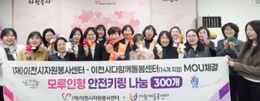 (플러스인뉴스) 이천시자원봉사센터와 이천시다함께돌봄센터는 4월 9일 센터 다목적실에서 자원봉사 활성화 및 지역사회 돌봄 공백 해소를 위한 업무협약(MOU)를 체결했다. 이번 협약을 통해 양 기관은 ▲지역사회 돌봄 서비스 질 향상을 위한 상호 협력 ▲자원봉사 프로그램 연계 및 활성화 ▲아동 복지 증진을 위한 공동 사업 추진 등 다양한 분야에서 협력을 강화하기로 했다. 특히 이날 협약식과 함께 진행된 ‘모루인형 안전키링 전달식’에서는 자원봉사자들이 직접 제작한 안전키링 300개가 관내 14개 다함께돌봄센터 이용 아동들에게 전달될 예정이다. 해당 키링은 아이들의 안전한 등‧하굣길을 기원하는 의미를 담아 제작됐다. 이미선 센터장은 “이번 협약을 통해 함께 동행하게 되어 뜻깊게 생각한다”라며 “자원봉사의 가치가 돌봄 현장까지 따뜻하게 이어져 아이들에게 긍정적인 영향을 주길 기대한다”라고 말했다. 이어 “앞으로도 지역사회와 협력해 나눔의 선순환 구조를 만들어 나가겠다”라고 밝혔다. 임인선 회장은 “아이들을 위한 자원봉사자들의 따뜻한 관심과 지원에 깊이 감사드린다”라며 “아이들이 더욱 안전하고 행복하게 성장할