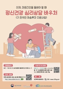 (플러스인뉴스) 양평군은 군민의 정신건강 증진과 심리적 안정 지원을 위해 ‘정신건강 심리 상담 바우처(구 전국민 마음투자 지원)’ 서비스 신규 제공 기관을 등록하고 본격적인 서비스 제공에 나선다고 밝혔다. 그동안 양평군에서는 1급 서비스 제공 기관만 운영되어 왔으나, 이번에 등록된 신규 제공 기관은 1급과 2급 서비스를 모두 제공할 수 있어 군민들의 서비스 선택 폭이 넓어질 것으로 기대된다. 특히 상담이 필요한 군민들이 상황과 필요에 맞는 단계별 상담 서비스를 보다 원활하게 이용할 수 있을 것으로 전망된다. 정신건강 심리 상담 바우처 서비스는 우울, 불안, 스트레스 등 정서적 어려움을 겪는 군민에게 전문 심리 상담 서비스를 제공해 정신건강 회복을 돕는 사업이다. 대상자로 선정되면 일부 본인 부담금을 내고 전문 상담 서비스를 이용할 수 있다. 정신건강 심리 상담 바우처 지원 대상은 △정신건강복지센터·청소년상담복지센터·Wee센터·Wee클래스·정신의료기관 등에서 심리상담이 필요하다고 인정된 군민 △국가건강검진 정신건강검사에서 중간 정도 이상의 우울이 확인된 군민 △자립준비청년 및 보호연장아동 등이다. 신청을 희망하는