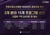 (플러스인뉴스) 안양시청소년재단은 2026년 국가 및 공공기관, 교육청 등이 추진하는 주요 공모사업 3개 분야에서 15개 프로그램이 선정되어 총 1억 2,810만 원 규모의 사업비를 확보했다고 3일 밝혔다. 선정 분야는 ▲안양과천교육지원청 '안양과천미리내공유학교 지역맞춤형 프로그램' ▲한국청소년활동진흥원 '우수 청소년활동 프로그램 지원사업' ▲국가보훈부 '보훈 테마활동' 등으로, 재단 청소년시설의 전문성과 프로그램 기획 역량이 대외적으로 인정받은 결과다. 먼저 안양과천교육지원청이 추진하는 '미리내공유학교 지역맞춤형 프로그램' 공모에서 7개 사업 총 5,610만 원 규모의 사업이 선정됐다. 해당 사업은 지역 자원을 활용한 융합형 교육 프로그램을 통해 청소년의 창의성, 진로역량, 디지털 역량을 강화하는 사업으로, 동안청소년수련관을 비롯한 재단 소속 7개 청소년시설이 참여하여 과학, 문화예술, 디지털, 진로 체험 등 다양한 프로그램을 운영할 예정이다. 또한 한국청소년활동진흥원이 주관하는 '우수 청소년활동 프로그램 지원사업' 공모에서는 재단 소속 6개 기관이 선정되어 국비 5,100만 원을 확보했다. 전국 192개 프