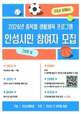(플러스인뉴스) 안성시는 시민 누구나 일상에서 부담 없이 운동을 즐길 수 있도록 ‘2026 종목별 생활체육 프로그램’을 운영하고, 4월부터 참가자를 모집 중이라고 밝혔다. 이번 프로그램은 오는 7월까지 안성시 관내 종목별 체육시설에서 진행된다. 육상, 수영, 배드민턴 등 총 30개 종목이 마련되어 있어 시민들은 자신의 관심사와 체력 수준에 맞는 운동을 자유롭게 선택할 수 있다. 특히 참가비가 전액 무료로 운영되어 경제적 부담 없이 참여할 수 있는 점이 큰 장점이다. 운동을 처음 시작하는 입문자도 쉽게 적응할 수 있도록 기초 실무 위주로 구성됐으며, 다만 일부 종목에 한해 장비 대여 등 최소한의 자부담 비용이 발생할 수 있다. 참여 대상은 운동에 관심 있는 안성시민 누구나 연령과 경험에 관계없이 신청 가능하다. 모집은 종목별 정원에 따라 선착순으로 진행되며, 종목별 담당자에게 직접 문의하거나 안성시체육회 안내를 통해 신청하면 된다. 안성시 관계자는 “생활체육은 건강한 삶을 유지하기 위한 가장 쉽고 확실한 방법”이라며, “이번 프로그램을 통해 많은 시민이 일상 속에서 운동의 즐거움을 찾고 삶의 활력을