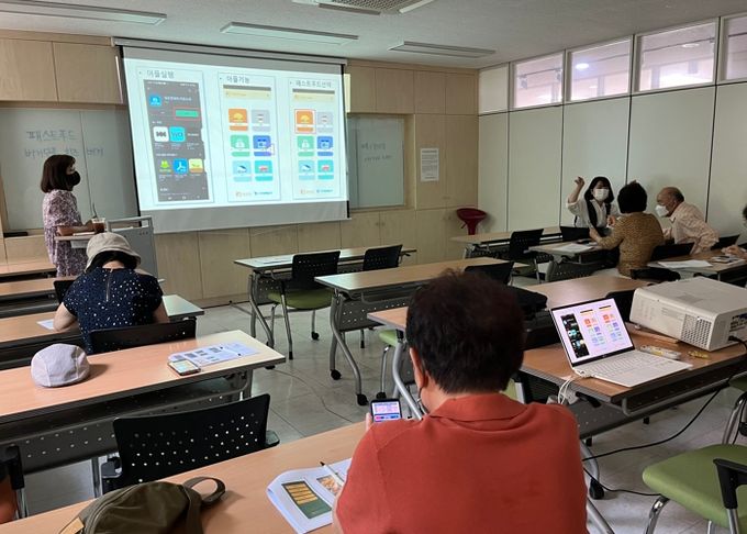 교육에는 주민자치 위원들이 재능기부 형식으로 직접 참여해 키오스크를 간접 체험할 수 있는 스마트폰 애플리케이션을 이용해 터치스크린을 시작하는 방법부터 결제하는 방법까지 안내했다.