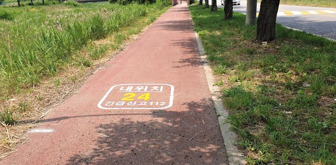 이에 3개 동은 주민 생활밀착형 사업으로 경안천 산책로 구간 바닥에 ‘내위치 001’ 등으로 부여한 안심번호를 200m 간격으로 표기했다.