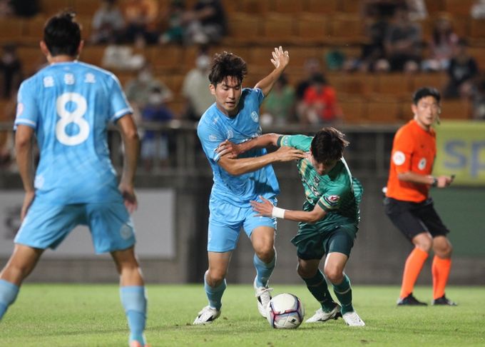 경기가 시작되고 천안은 초반부터 위기를 맞닥뜨렸다. 전반 4분, 경주의 측면 크로스를 조우진이 득점으로 연결하며 한 점 차 리드를 잡았다.