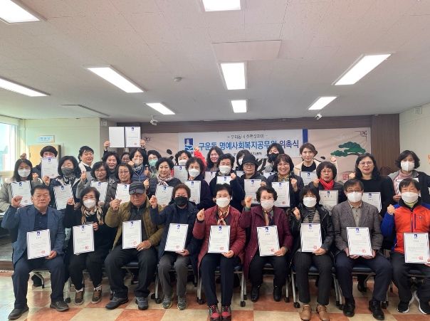 구운동 명예사회복지공무원은 지역사회보장협의체, 통장협의회, 생활업종종사자 등 지역사회 복지증진에 관심이 있는 지역 주민들로 구성됐으며 지역에 봉사하고자 하는 마음이 있다면 누구라도 신청할 수 있다.