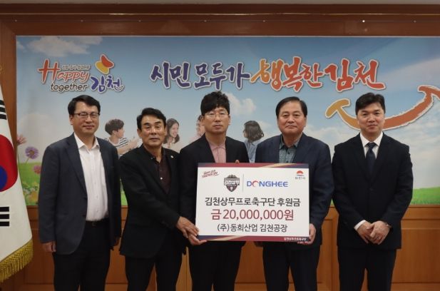 (플러스인뉴스) ㈜동희산업이 김천상무에 2년 연속으로 후원금 2천만원을 전달했다.