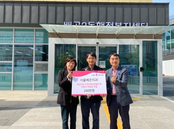 서울예은치과는 2021년 8월에도 어려운 이웃을 돕기 위해 배곧2동에 후원금을 전달했다. 이후에도 다양한 경로를 통해 지역사회 소외계층을 돕고 있다.