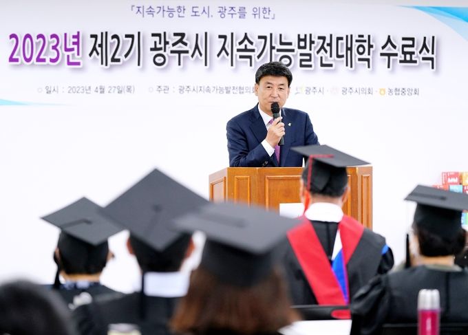 방세환 광주시장은 “지속가능발전대학에서의 배움을 토대로 지역사회 리더로서 광주시 지속가능발전의 중추적인 역할 해주길 바란다.”고 당부했다.