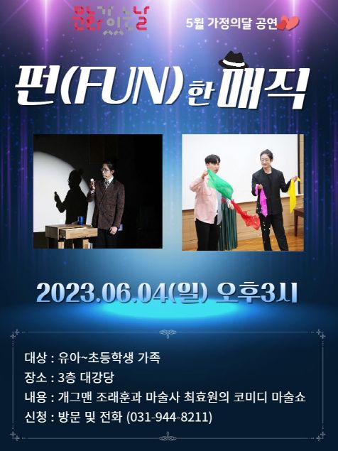 도서관 관계자는 “펀한 매직 공연으로 주민의 문화 갈증이 조금이나마 해소되길 바라며, 온 가족이 함께 도서관을 찾아 독서와 문화를 즐기는 계기가 되길 기대한다”고 말했다.