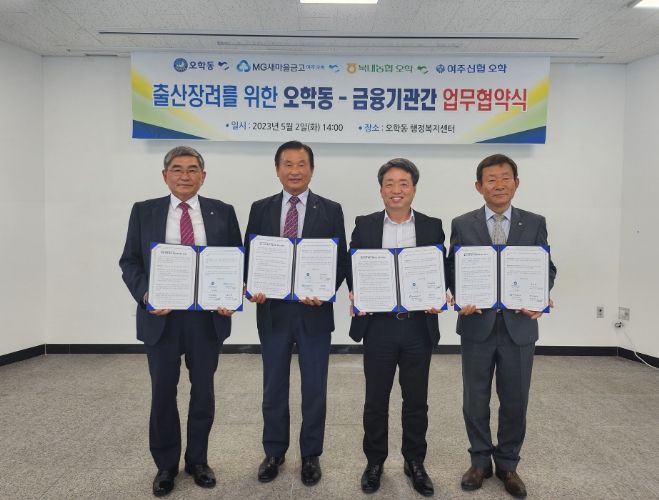 (플러스인뉴스) 여주시 오학동은 지난 2일, 오학동내 3개의 금융기관과 출산장려 분위기 조성을 위한 업무협약식을 체결했다.