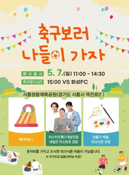 (플러스인뉴스) 시흥시는 가정의 달을 맞아 시흥시민축구단이 ‘축구보러 나들이 가자’ 행사를 오는 7일 개최한다.