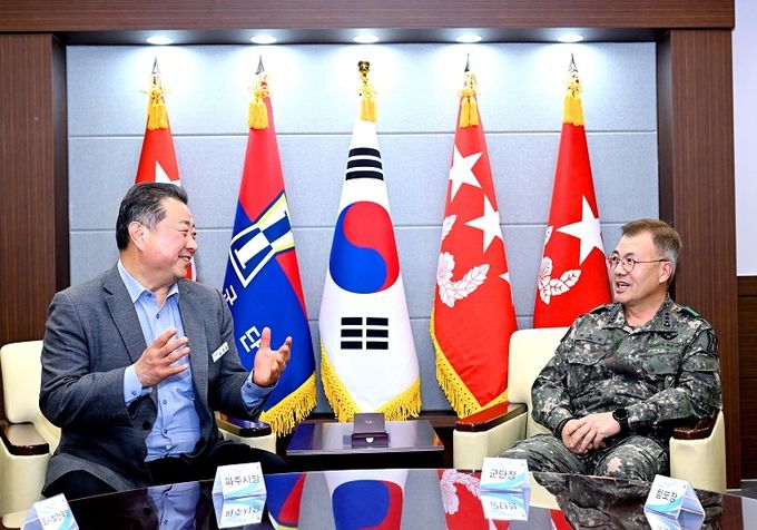 파주시장과 1군단장은 파주시 주요 역점사업과 지역발전 현안 등에 대해 폭넓게 논의했으며, ‘시민중심 더 큰 파주’, ‘경기북부 균형발전’을 위해 파주시와 1군단이 긴밀하게 협력해 상생 발전해 나가기로 뜻을 모았다.