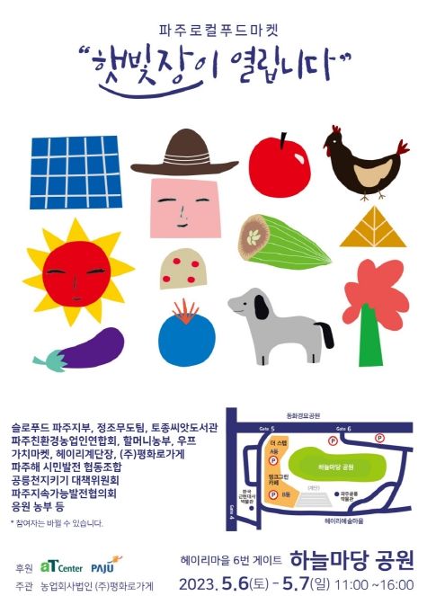 (플러스인뉴스) 파주 로컬푸드마켓 ‘햇빛장’이 5월 6~7일 파주 탄현면 헤이리 예술마을 하늘마당공원에서 열린다.